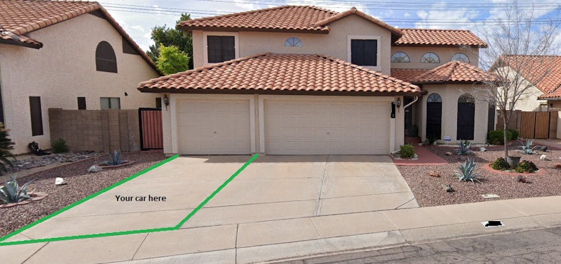 We have a three car driveway and only two cars. When rented, we will only park one car in the driveway to allow plenty of safe, protected space for your vehicle. Vehicles must be insured, in working order, and not an eyesore. Sorry no RVs or boats allowed.