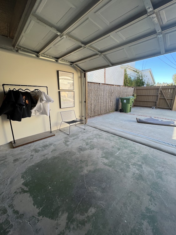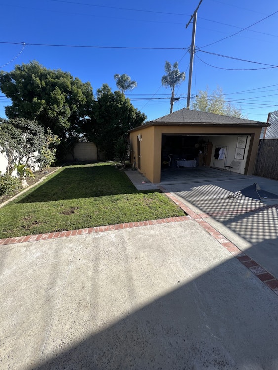 Finished garage for rent. Newly dry walled with concrete floors and power outlets. Secured behind a locked gate, this detached garage has an automatic door and a secure side door. Can be used for storage, a workspace, or for parking.