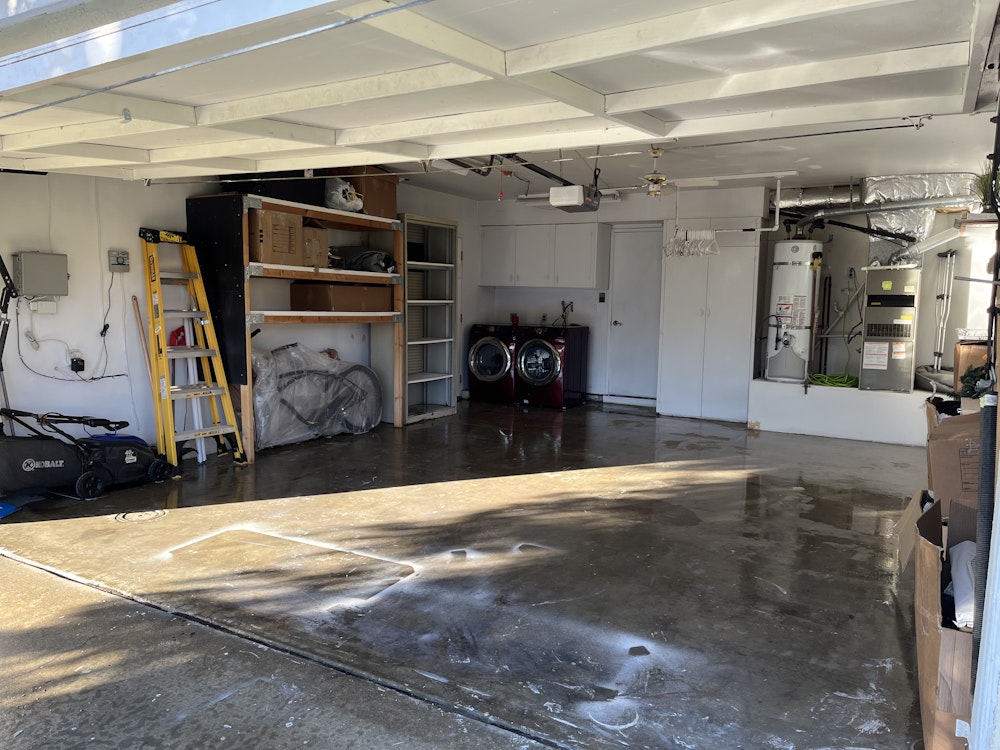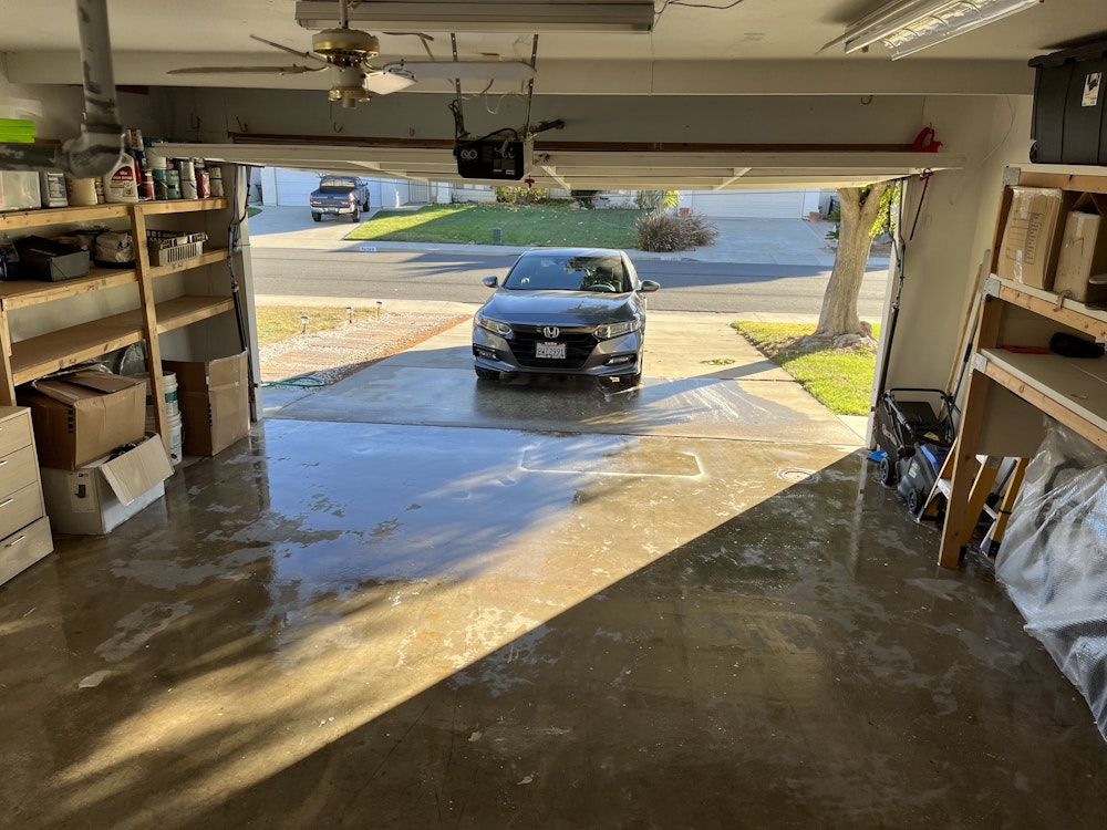 Approximately 400 sq ft of garage space available for storage with ventilation. There is additional space to store items on shelving as well. Additional Side door for entrance/exit for the storage area.