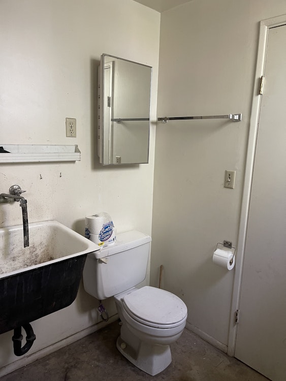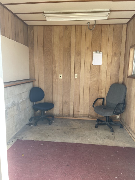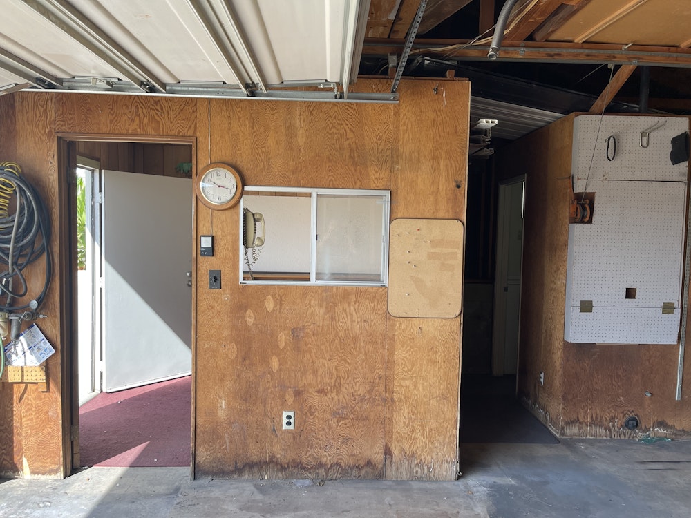 Hobby Workshop with office and 2 car garage. Complete with a full bath. Great for storing vehicles and/or equipment and getting occasional work done. Lots of space with a private driveway. Not available to run a business out of or sleep overnight. No noisy work allowed. Ideal for someone who has collector cars or cars they store and like to tinker with when time allows. No parking/sleeping on the property overnight. 5ft. Mechanic pit in garage.