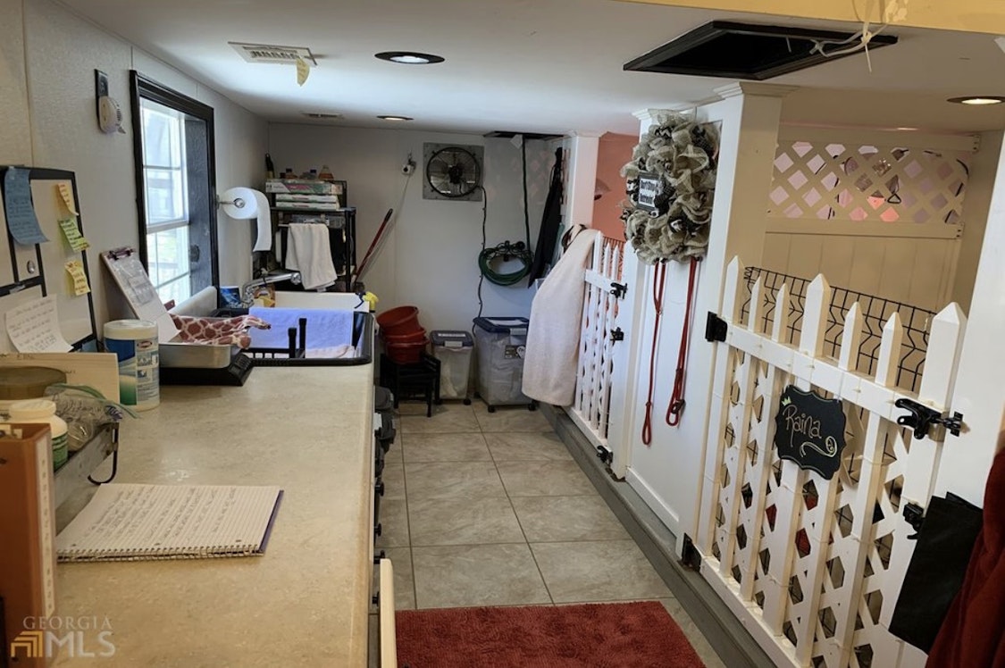 Dog kennel shed available for rent - 6 gated areas with drainage & lights - Wall outlets in all 6 areas - 1 restroom - Large vanity for storage & cleaning - Cold & hot water - AC/Heat