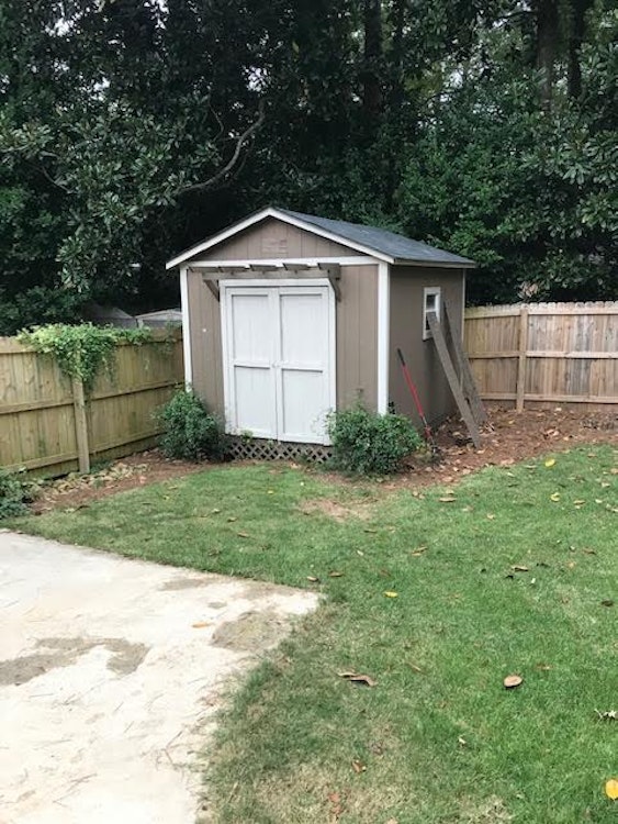12 x 10 wooden shed with Gabled roof and a loft perfect for small to medium boxes, shed is ventilated and dry