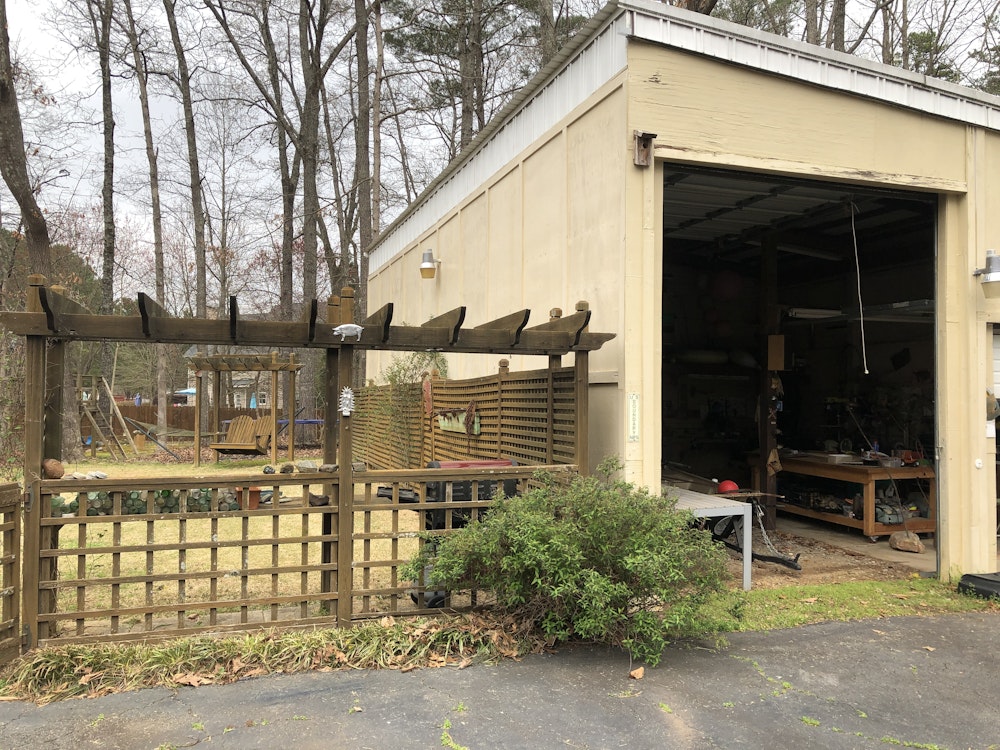 RV Storage. Detached Garage space. Gravel Floor. Not climate controlled. 9' 8" wide x 12' tall garage door. Huge driveway with enough room to turn around and back into space.