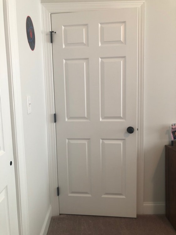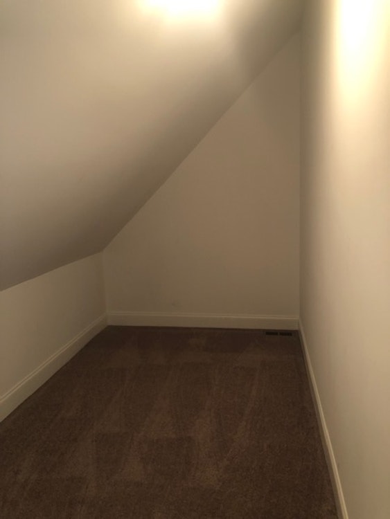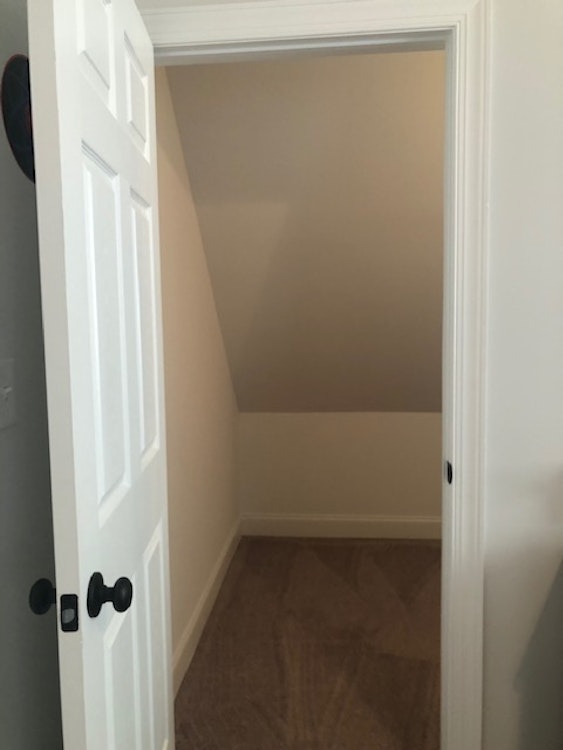 Huge walk-in Guest Room Closet. Carpeted and HVAC. Security camera at front door of home. This is on the second floor so items will need to be carried up one flight of stairs. We can help with boxes that are medium-sized and weigh less than +/- 25 lbs. Clean, smoke-free home. Closet is located at sloping part of roof. Lowest height of ceiling is 2.5 ft and tallest height is 8.5 ft. Total sq ft = approx 450 sq ft.