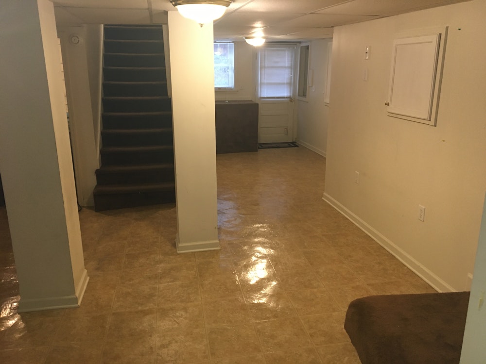 We have a full basement available for storage. Laminate floors. No previous flooding. There is a small wash room connected that is not for storage space.
