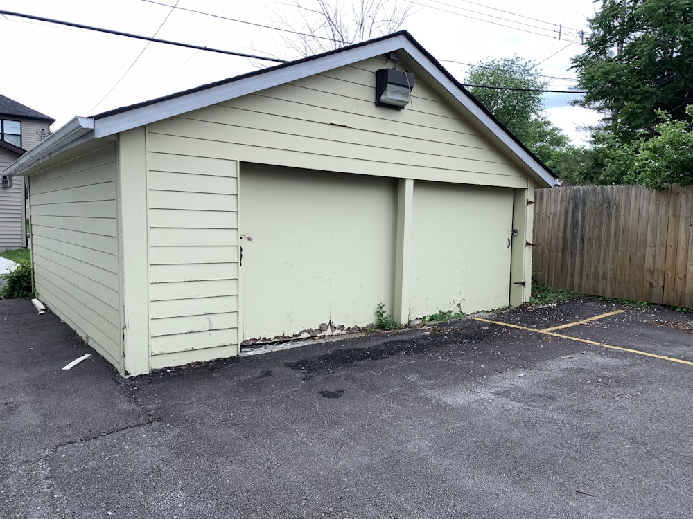 Easy access from the parking lot of 7700 Dale. Enough space for 2 vehicles or equipment. I am unsure of the exact dimensions