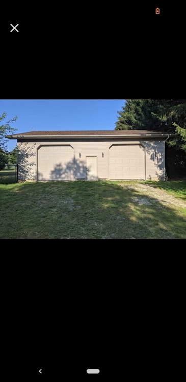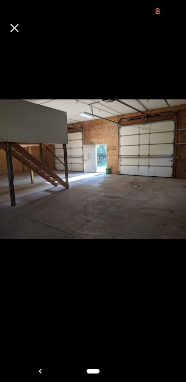 2 Bay Garage with high ceilings, includes loft space inside for a hangout area. Comes with heater to keep garage above freezing in the winter time. It is well insulated so it stays pretty cool inside if you keep the garage doors down. Otherwise open some windows and use some fans and it feels pretty good inside. Use it for storage or the occasional workshop