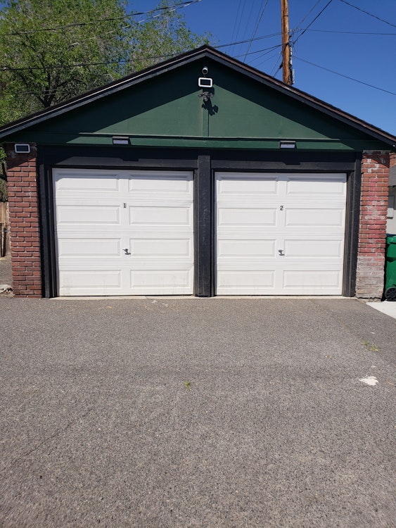 Garage rental offered. The garage shares a common wall with adjacent garage, also rented by other party. Space is large enough to accommodate basic garage storage needs like camping supplies, bicycles, tools and smaller machinery, furniture, etc. Garage does not have AC, motion security cameras managed by owner facing garage, no electrical outlets, motion detector lights are set on the side and front of garage. Access to garage is via alley way. Keys provided to renter upon signature of minimum 6 month lease. Garage measures roughly 9.2 W X 18.3L = 168 sqft
