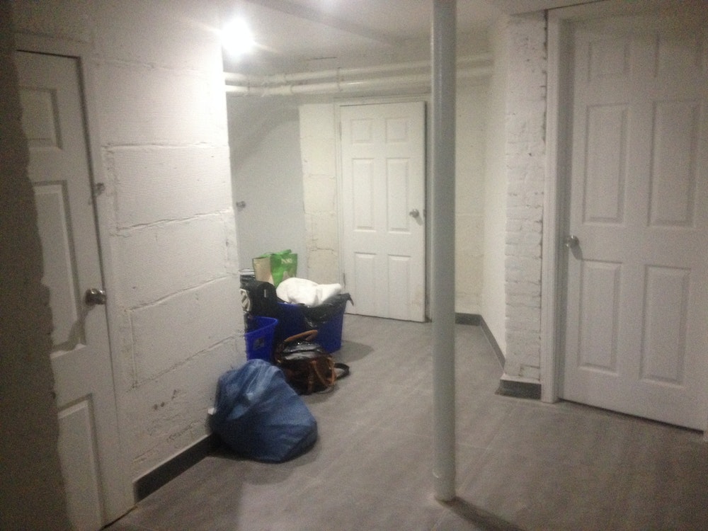 Hi. This is space located in my basement. It is heated and dehumidified. You may store things here short term or long term. I will be around to keep an eye it and assist you while it is here. There are two steps down and a half steps up to get things into the apartment, then the basement is down one flight of stairs. I am around to monitor things as needed and easy to coordinate with for access as needed. Just let me know when you want to swing by.