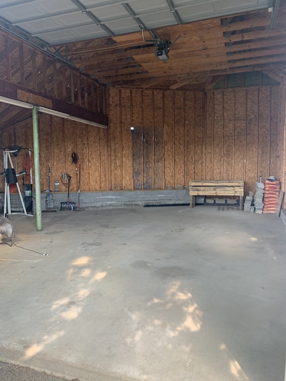 The garage was built originally for a large recreational vehicle but is now the perfect spot for a small business owner to use as a workspace. The garage has electricity and will have water access from a hose located near the entrance. Rent is same whether used as shop or storage.
