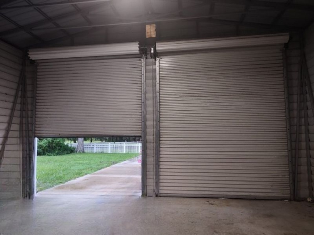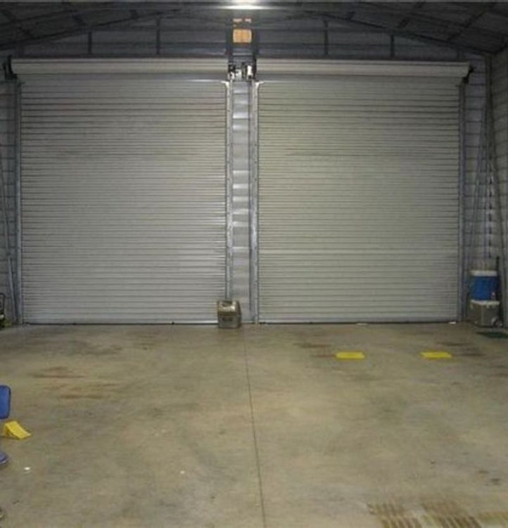Space is 50 ft long, 16 ft high. Can fit the biggest RV bus or a tall boat. One side is occupied with our stuff, the other side is available. Connected to electricity. Available now. 24/7 visitation.