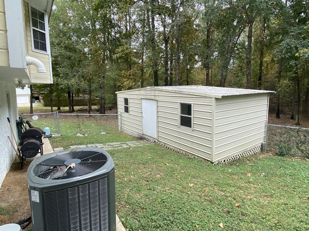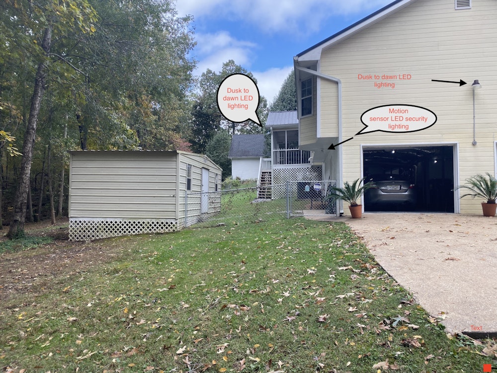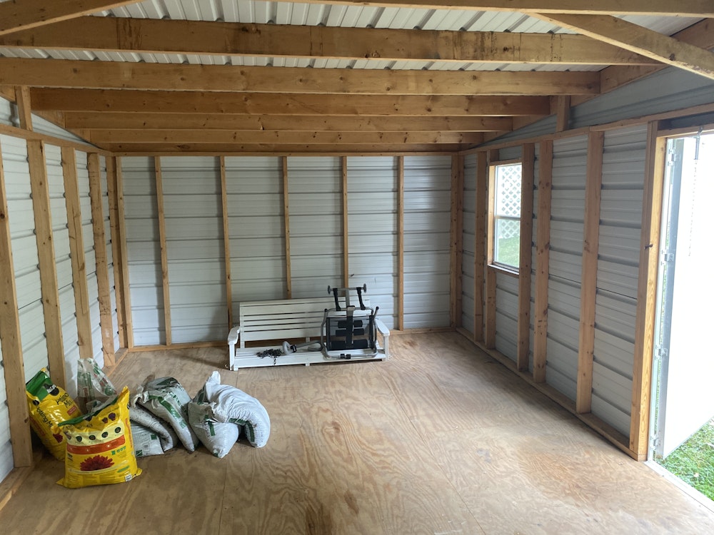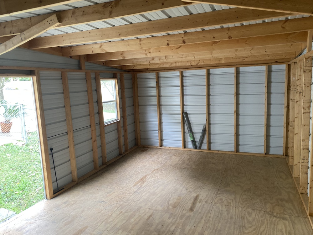 12X24 water tight shed with wooden floor. Located in quiet neighborhood, not on a thru street. Motion sensing led lighting pus two dusk till dawn lights. Single & double gates for easy access for loading, gates are normally locked, call for access. Monthly exterior pest control spray. Interior lighting and electric.