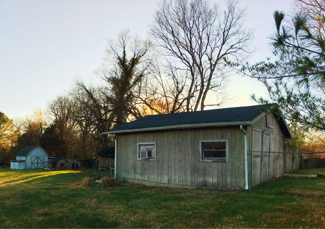 Quiet, older neighborhood. Well-lit area. Open concrete floor. Large double doors for entry.