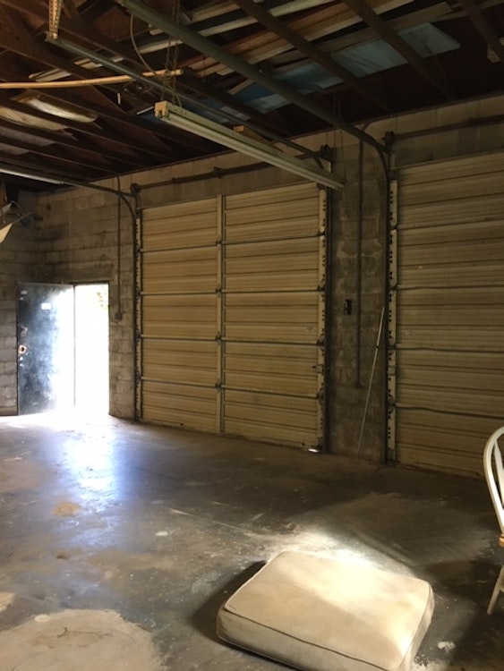Double bay garage doors for easy load in. 1100 sqft with tall ceilings. Entire Structure for rent. Safe neighborhood.
