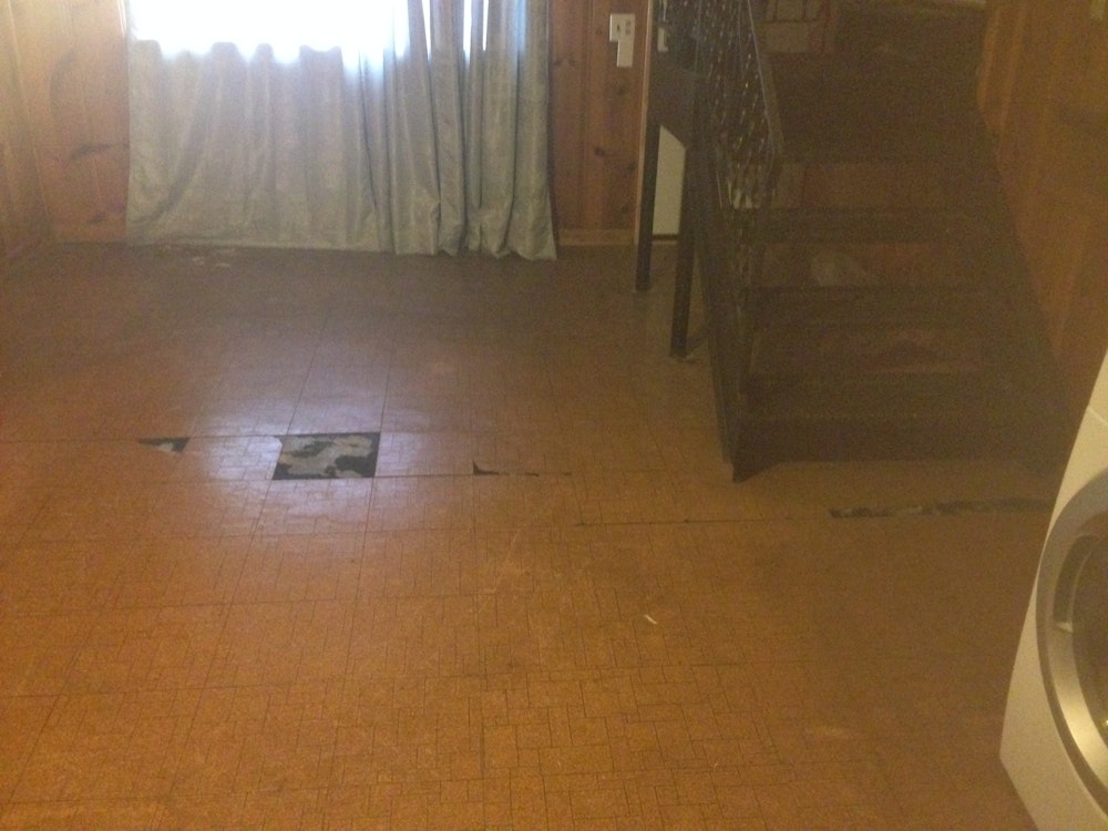 Converted garage now utilized as basement space. Only thing in the room is washer/dryer unit. The rest of the space can be used for storage.