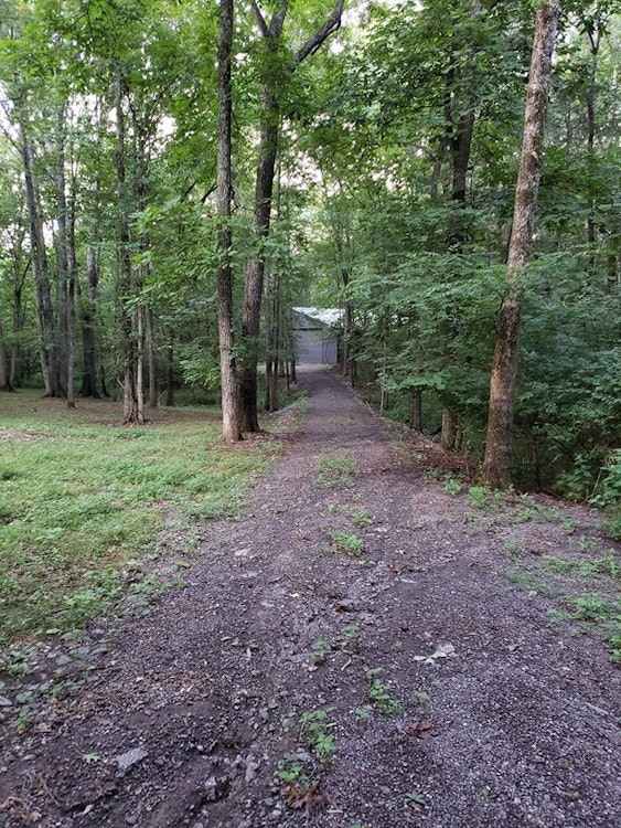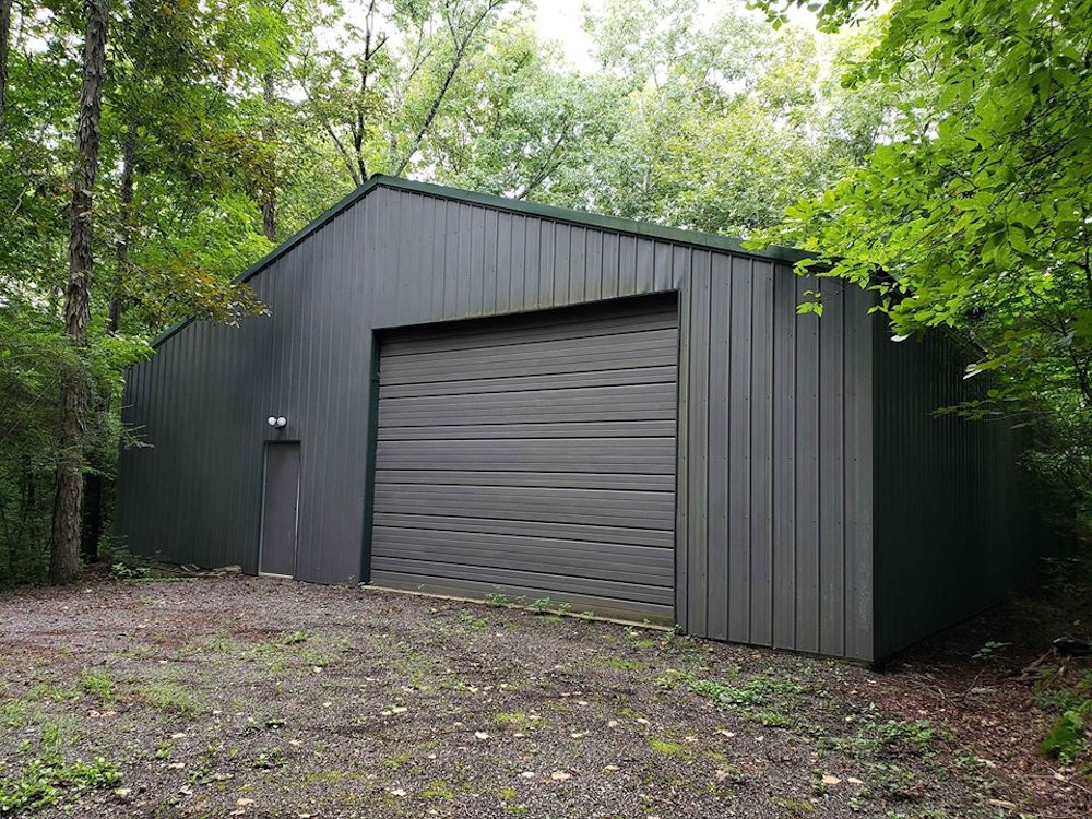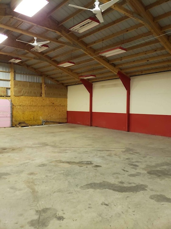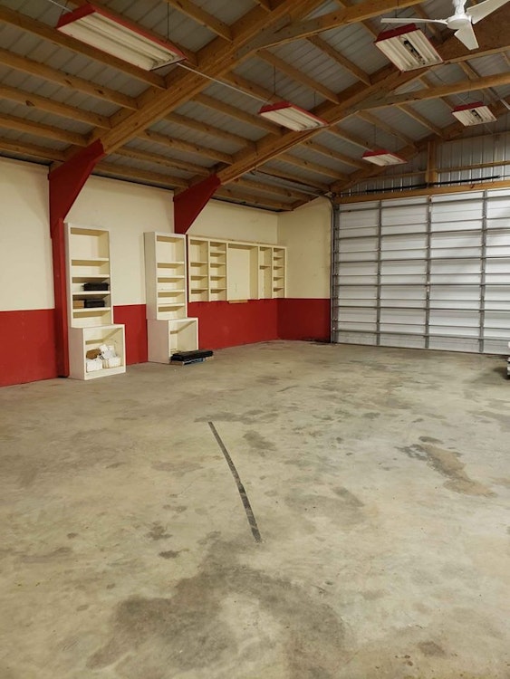 45x60 total, the door is 12ft so that should give a limit on size. Driveway downhill has some sharper turns around trees and is 10ft wide. Electric no water. I'd need 24 hr advance notice and no working or living in there of course.