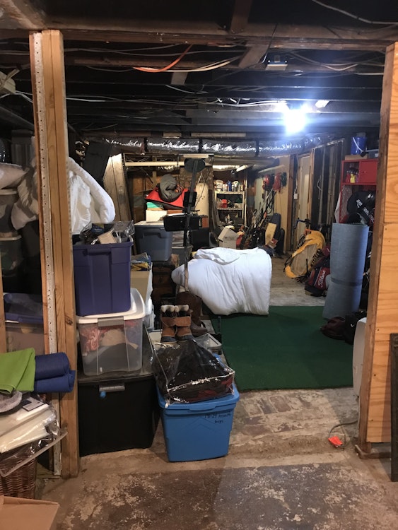Unfinished basement, brick and cement flooring, 8 ft clearance. Dehumidifier in operation 24/7. Full size door access, outside walkway with about eight steps down. Parking in front or back alley. Current renters moving out by Aug. 1.