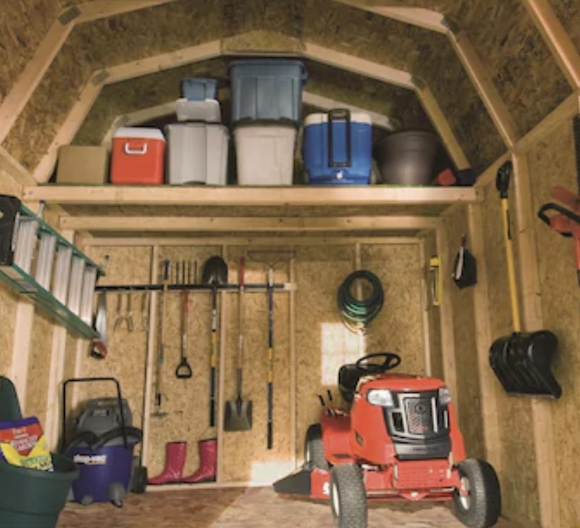 Brand new storage shed with shelves