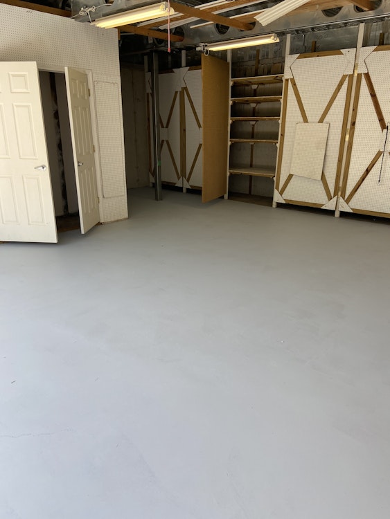 Large garage available for a variety of uses. Parking area is 24’ X 18’ for a total of 432 square feet. Ceiling height is 9 feet. In addition, there is 125 square feet of shelved storage space, 64 square feet of open storage area and a 20 square foot closet. Electrical service includes a 120v outlet as well as a 20 amp 220v outlet. The garage also includes the use of a full bathroom with walk-in shower and utility sink. An exterior hose bib is right outside the garage door. The garage is attached to a house and has a separate entrance. The garage is not accessible from the house. There is no heat or AC.